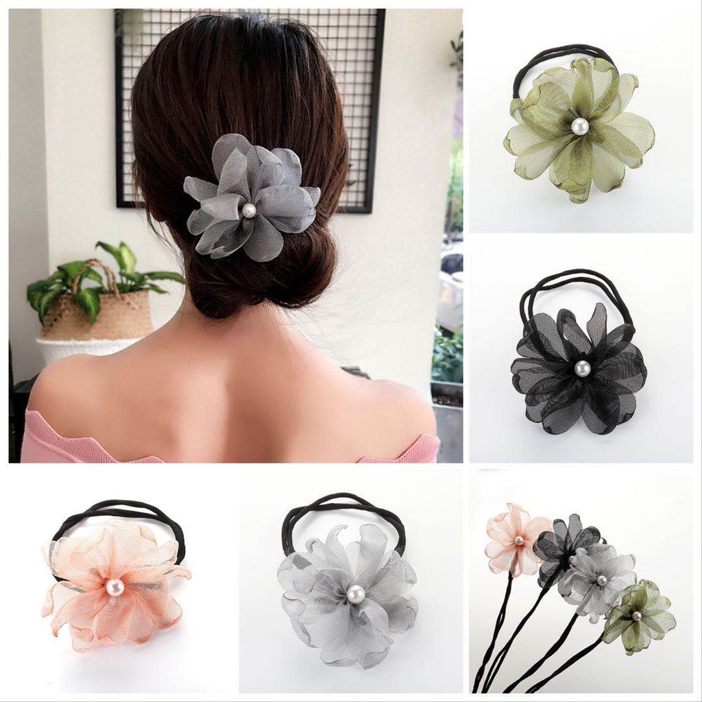 Ikat Rambut Korea Motif Bunga Aksen Mutiara Untuk Wanita ...