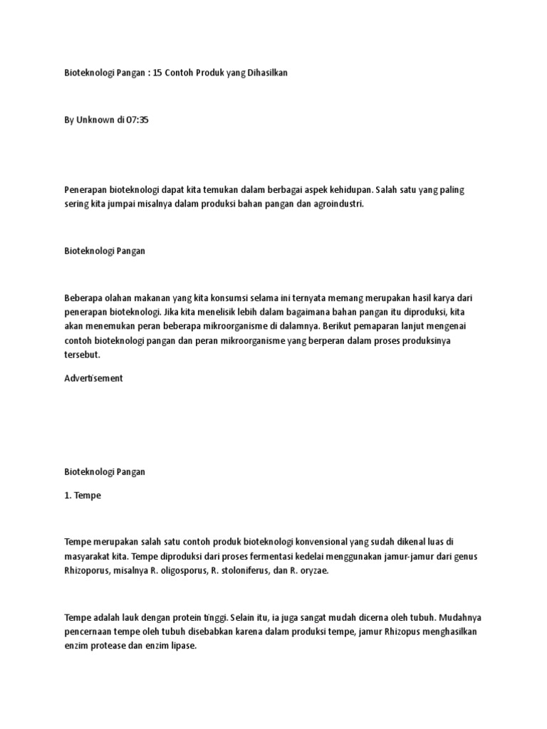 Contoh Produk Bioteknologi Konvensional Dan Modern Dan Sumber Agennya