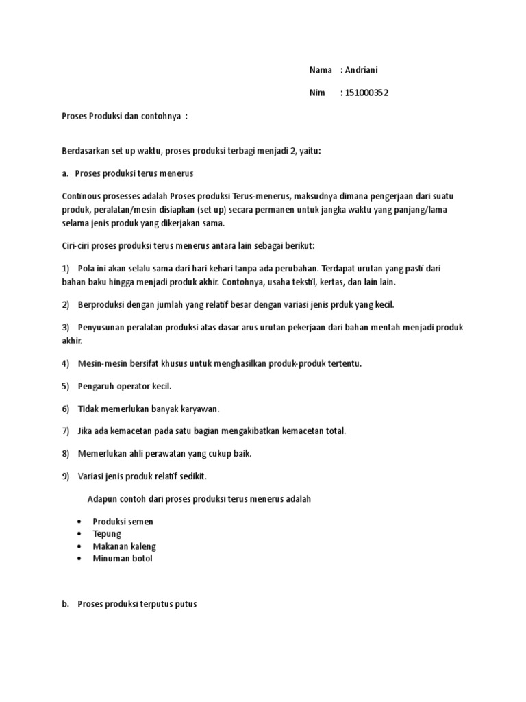 Proses Produksi Terputus Putus Dan Contohnya - Bagikan Contoh