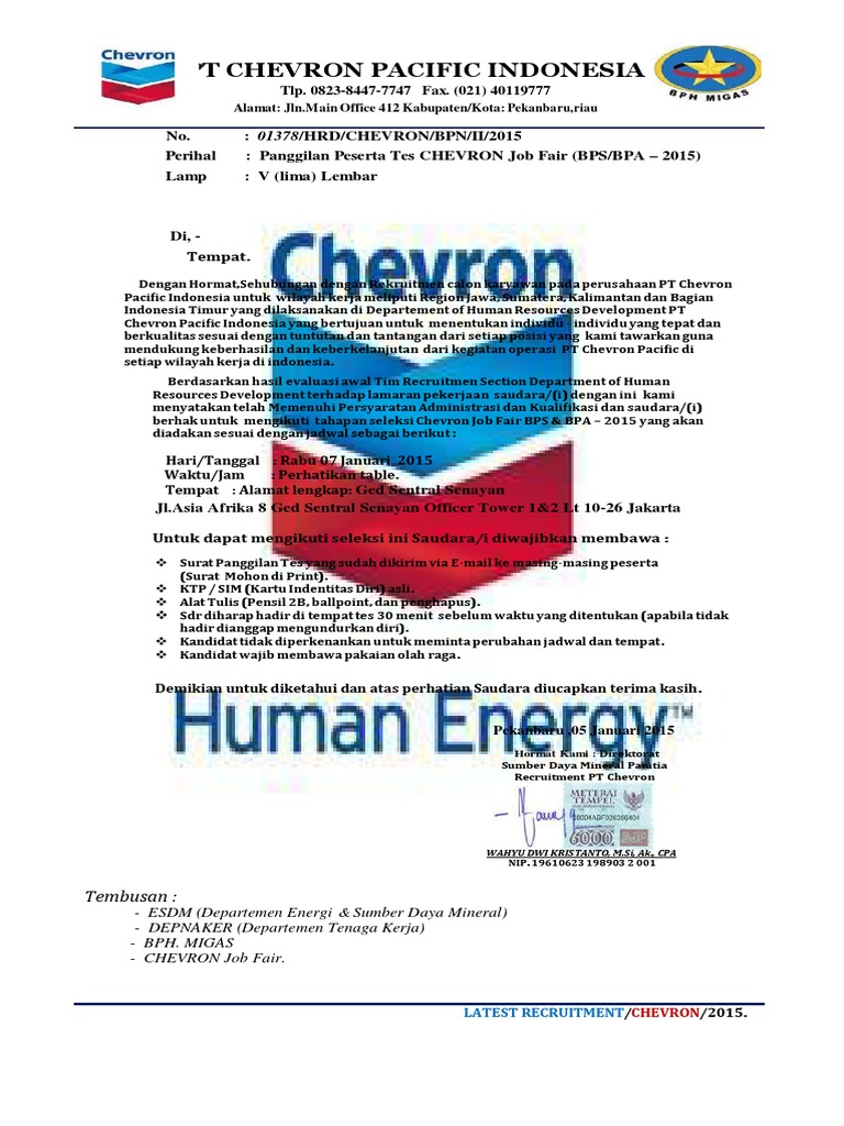 Contoh Surat Penipuan Atas Nama PT. Chevron (Hati-hati)