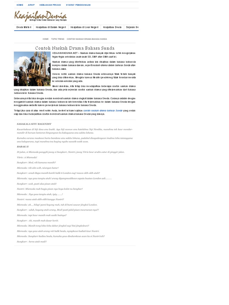Contoh Rarakitan Bahasa Sunda. Majar maneh artinya ceuk maneh atau menurutmu. Majar manéh cengkéh konéng Kulit peuteuy dina nyiru.