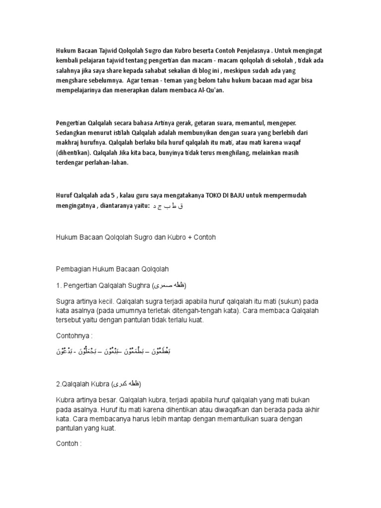 Contoh Qo Qolqolah Sugro Dan Kubro