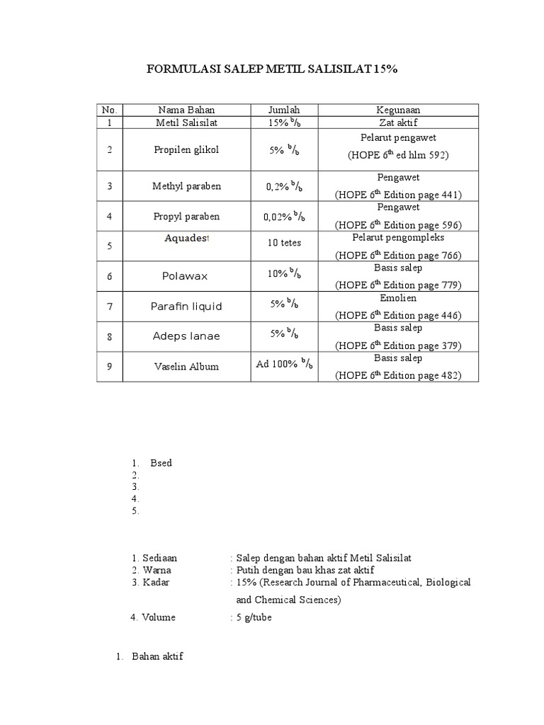 Contoh Salep. Salep gatal kutil yang mengandung kortison bisa mengatasi ruam dan gatal karena logam, perhiasan, dan produk laundry. Antioksidan ditambahkan ke dalam salep bila diperkirakan terjadi kerusakan basis karena terjadinya oksidasi Contoh antioksidan yang sering ditambahkan: Butylated Hydroxyanisole ( BHA ), Butylated Hydroxytoluene (BHT), Propyl gallate, dan Nordihydroguaiaretic acid ( NCGA) Peraturan Pembuatan Salep Menurut F.